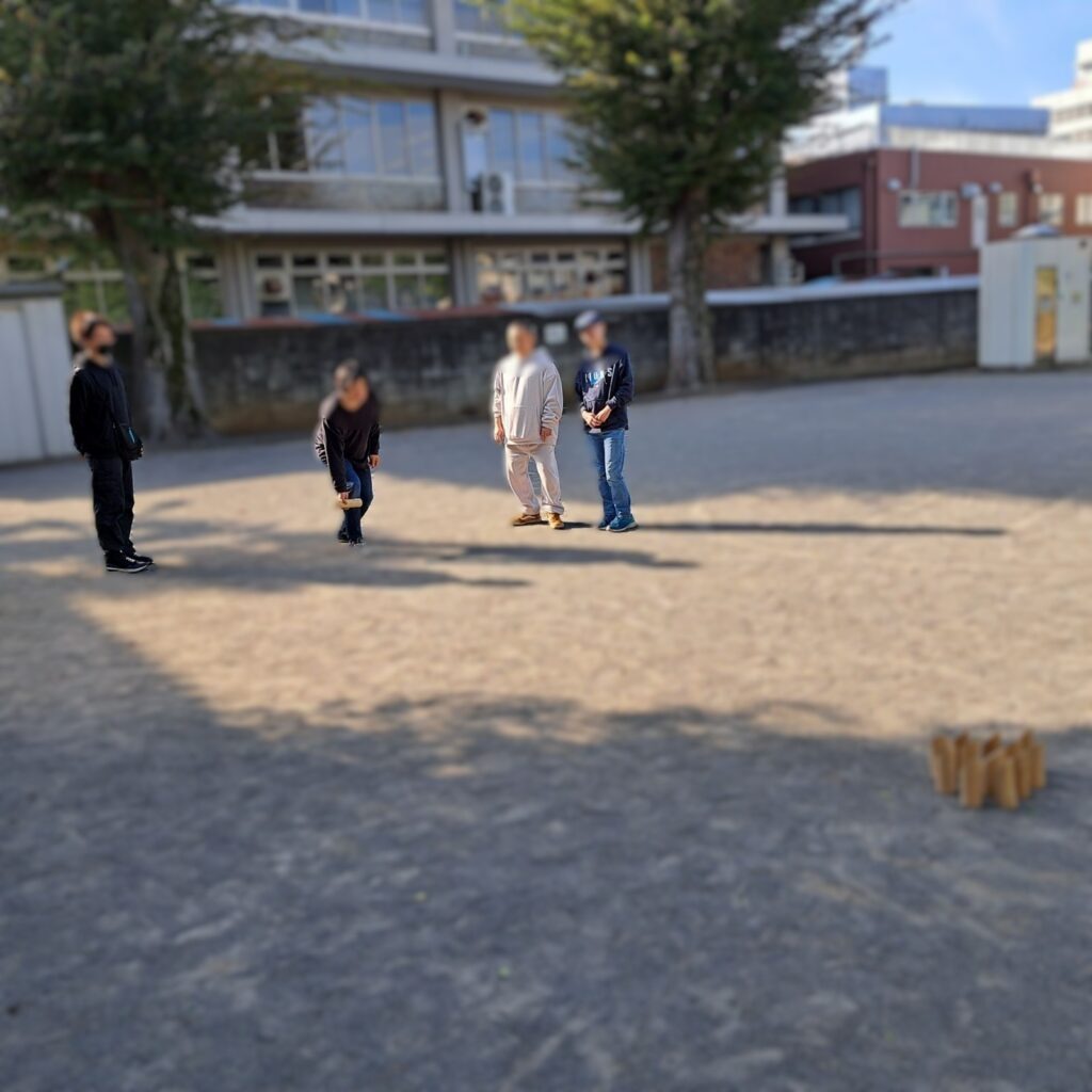 本日(2025 年 11 月 8 日)は晴天に恵まれ、気持ちの良いさわやかな秋風の中、まさに絶好のモルック日和です。参加者は 4 名のため少し寂しかったですが、2 対 2 で分かれてのチーム戦を行いました。