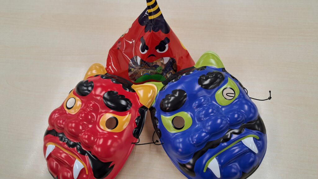 ところで、「鬼は外!福は内!」の掛け声は行っていますか?私の実家(もう半世紀前のお話ですが)では父が毎年大きな声で行っていました。私は耳をふさいで(うるさいわ、恥ずかしいわ)、母はため息をついていた(巻いた豆を片付けるので)ことを思い出します。最近はあまり見かけなくなりました。少し寂しい気もしますね…。