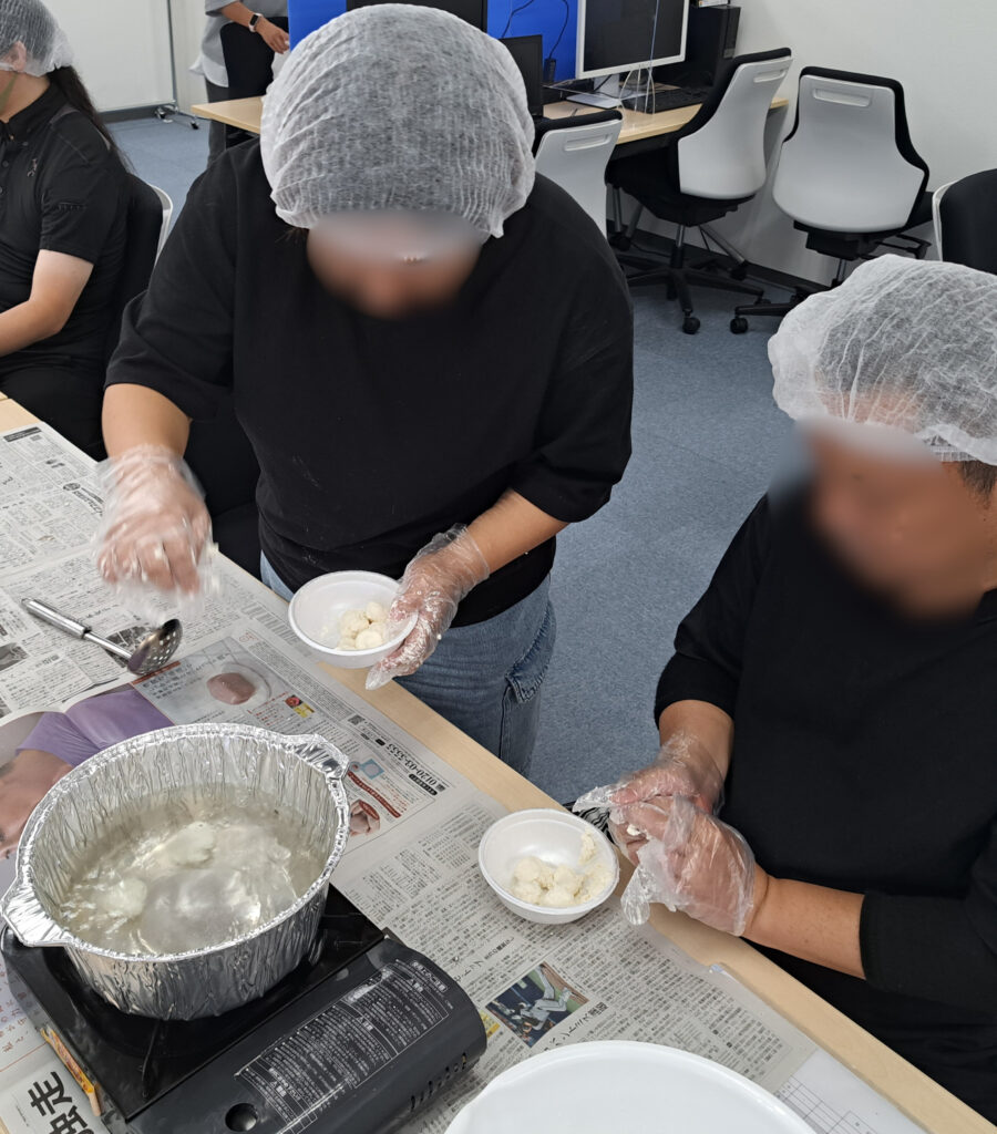 豆腐と白玉粉を混ぜて作ります。皆さん自分の分を作成し、お団子作成初体験の方も手の感触を楽しみながら思い思いの形の団子を作りました。きなこ、こしあん、みたらしのお好みのたれをつけておいしくいただきました。お腹が満たされた後は神経衰弱とババ抜き大会開催です。神経衰弱では他の方も応援しつつ真剣勝負で挑み、ババ抜きもジョーカーが行ったり来たりするハラハラドキドキのババ抜きとなりました。